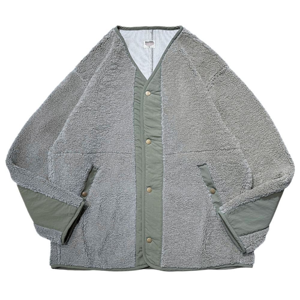 ボアとグログランのコンビで再構築されたカーディガン。