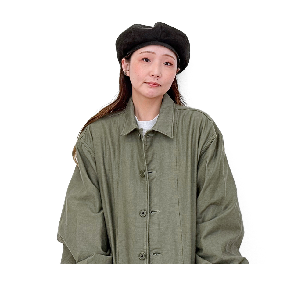 シャツディテールとコートのサイズを組み合わせたアイテム。